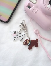 半透明な質感が魅力的な可愛い犬のアクリルキーリング.
