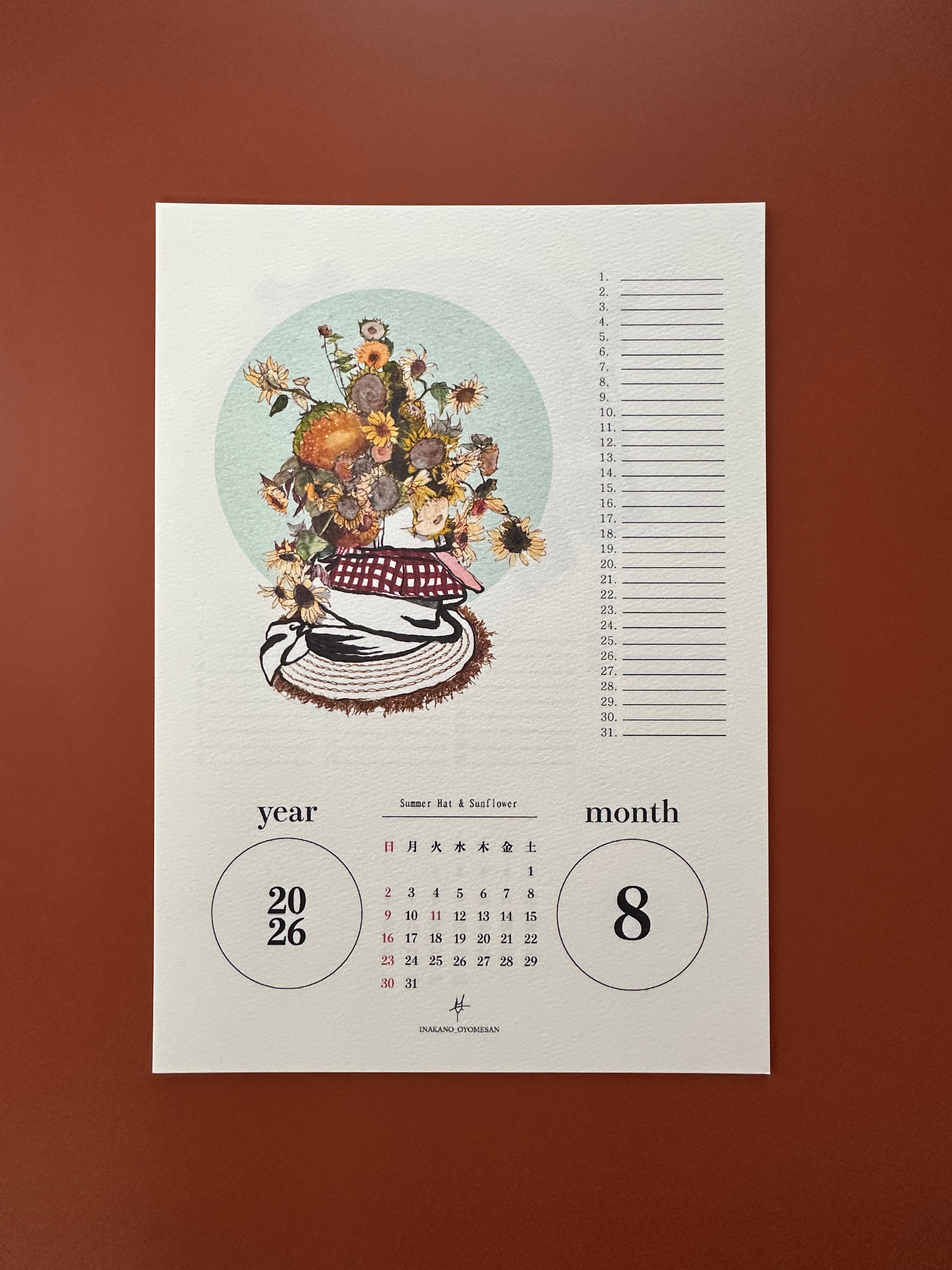 【田舎のお嫁さん】2026 illustrator calendar -fashion accessories & seasonal flowers- A4