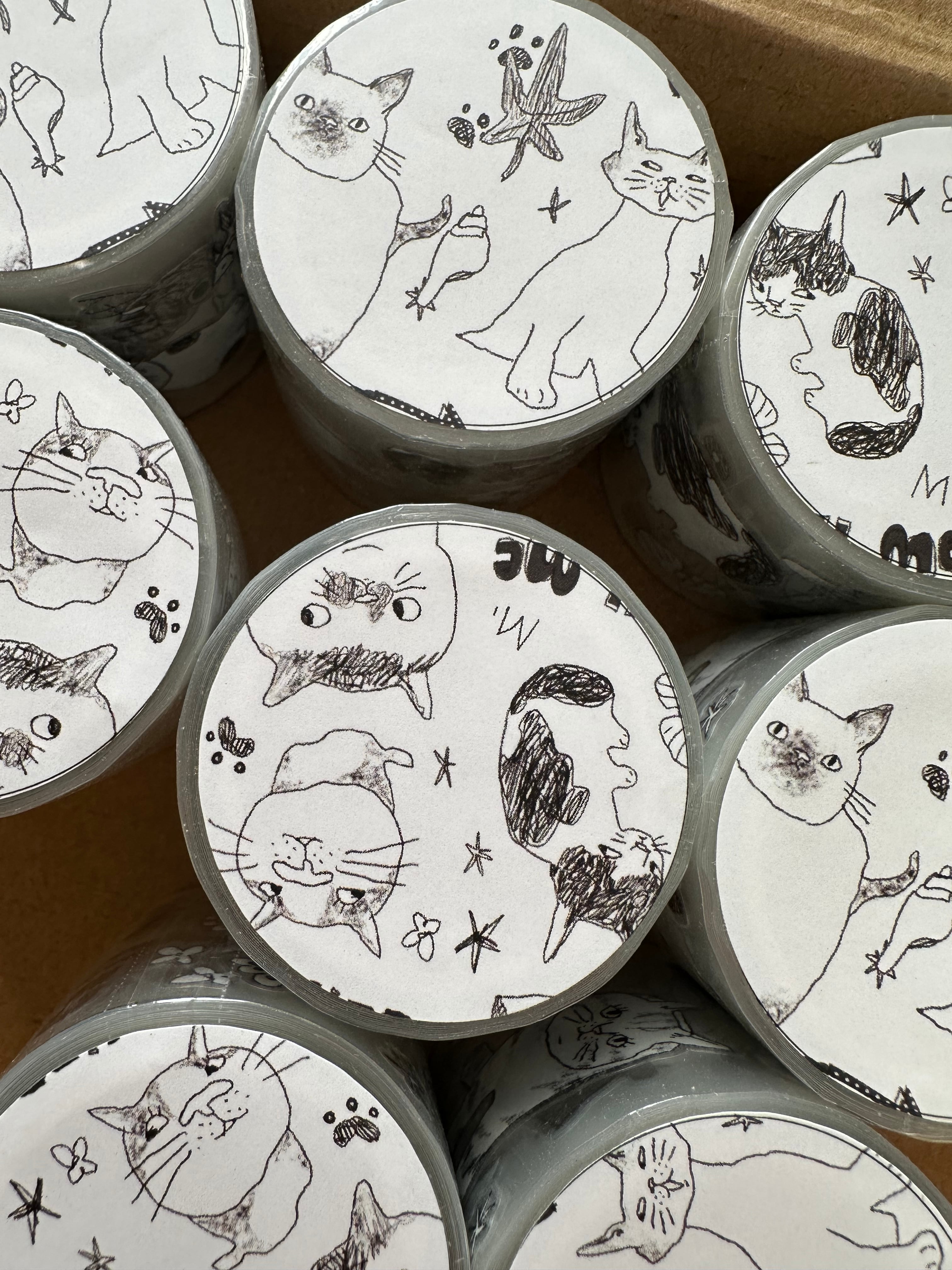 なんとも言えないかわいいdrawing catのロールステッカー.